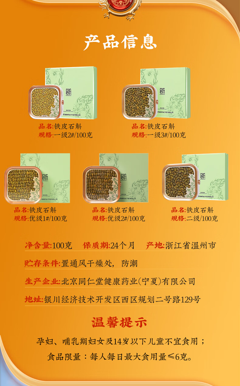 商品名称:同仁堂 铁皮石斛 一级2#100g/礼盒装