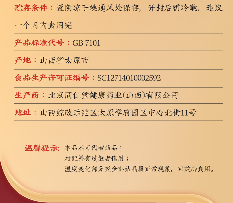 - 【生产企业】:北京同仁堂健康药业(山西)有限公司(原:北京同仁堂山西养生醋业有限公司)