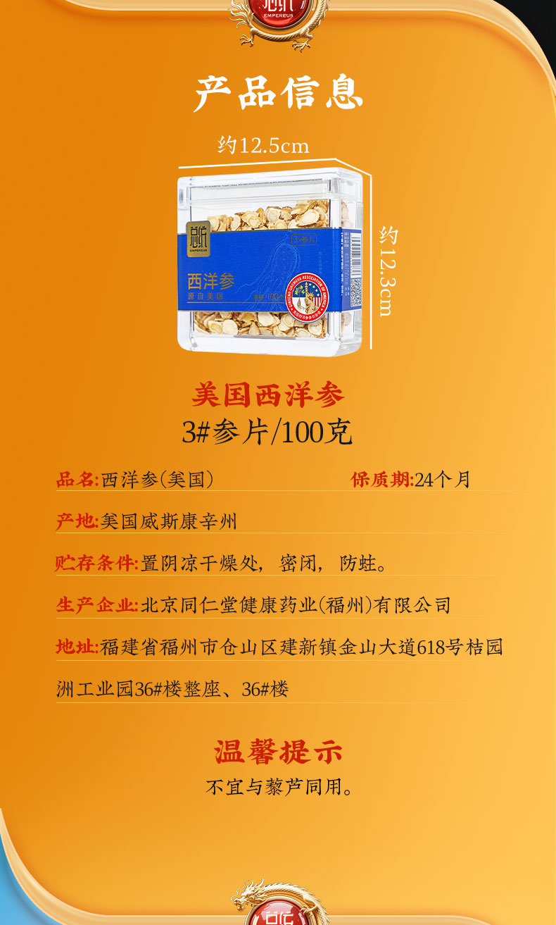 - 商品名称:同仁堂 西洋参 3#参片/100g/罐