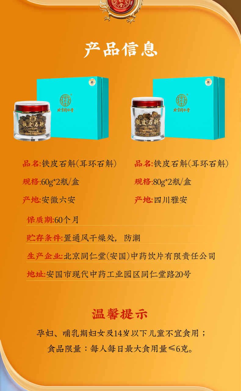 商品名称:同仁堂 铁皮石斛礼盒装 60g*2瓶