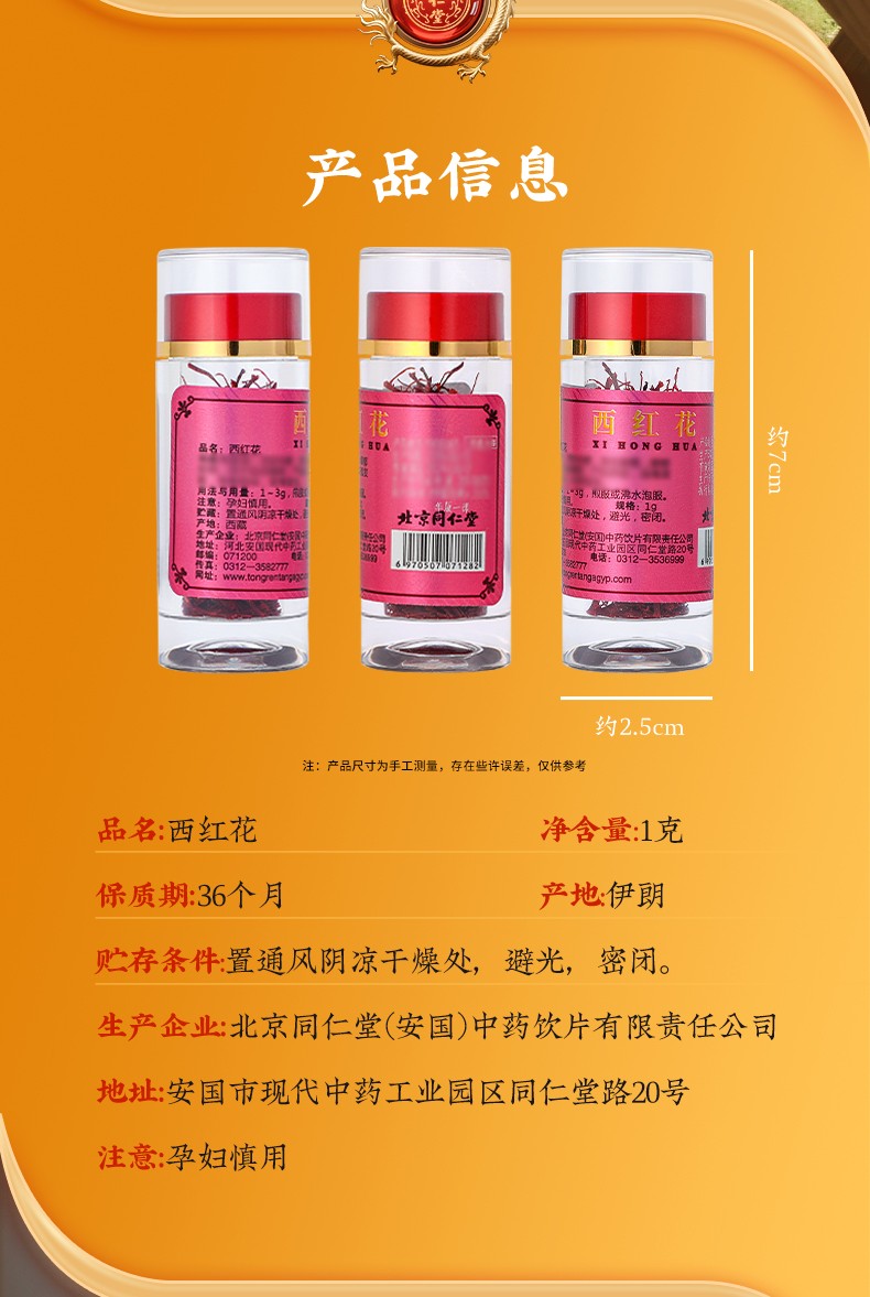 商品名称:同仁堂 西红花 1g/瓶