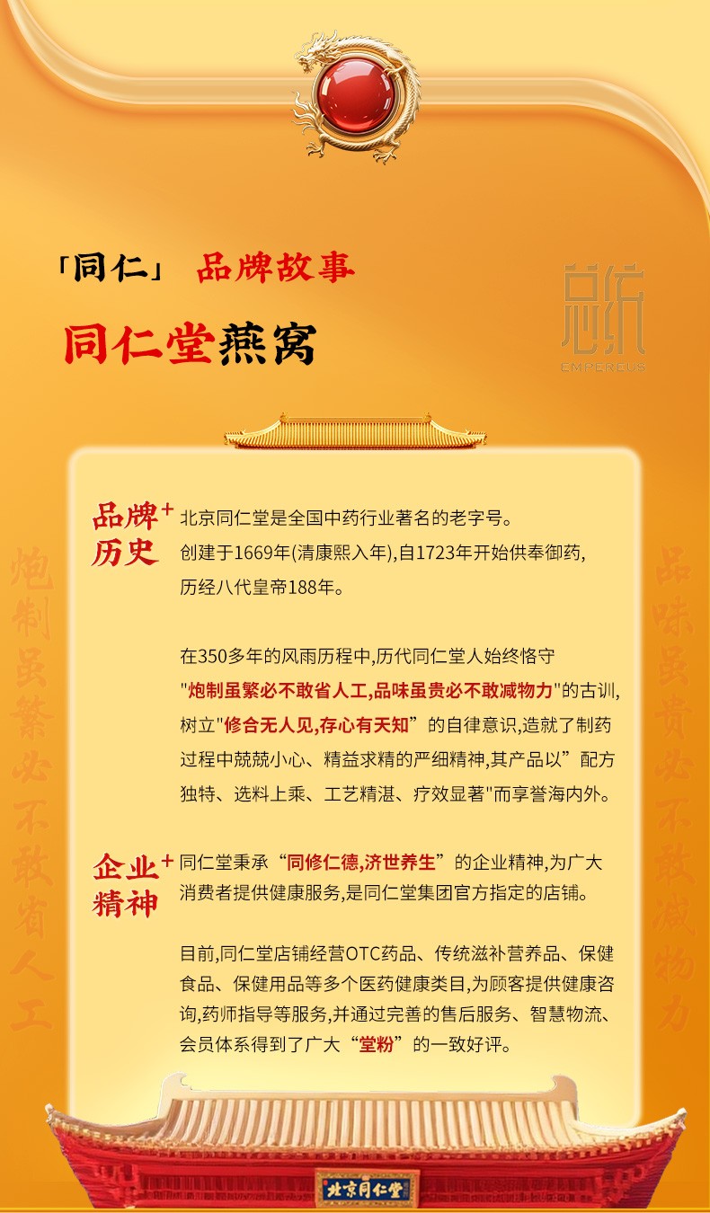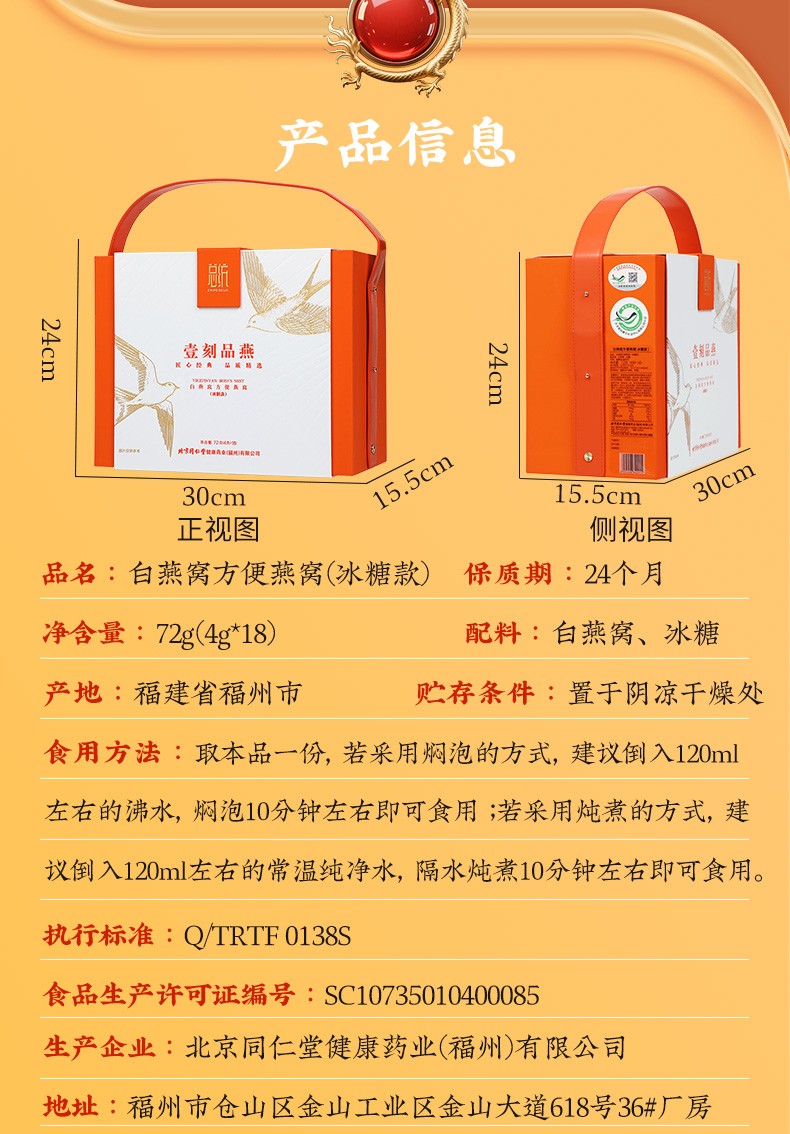 - 商品名称:同仁堂 方便燕窝 4g*18瓶/盒