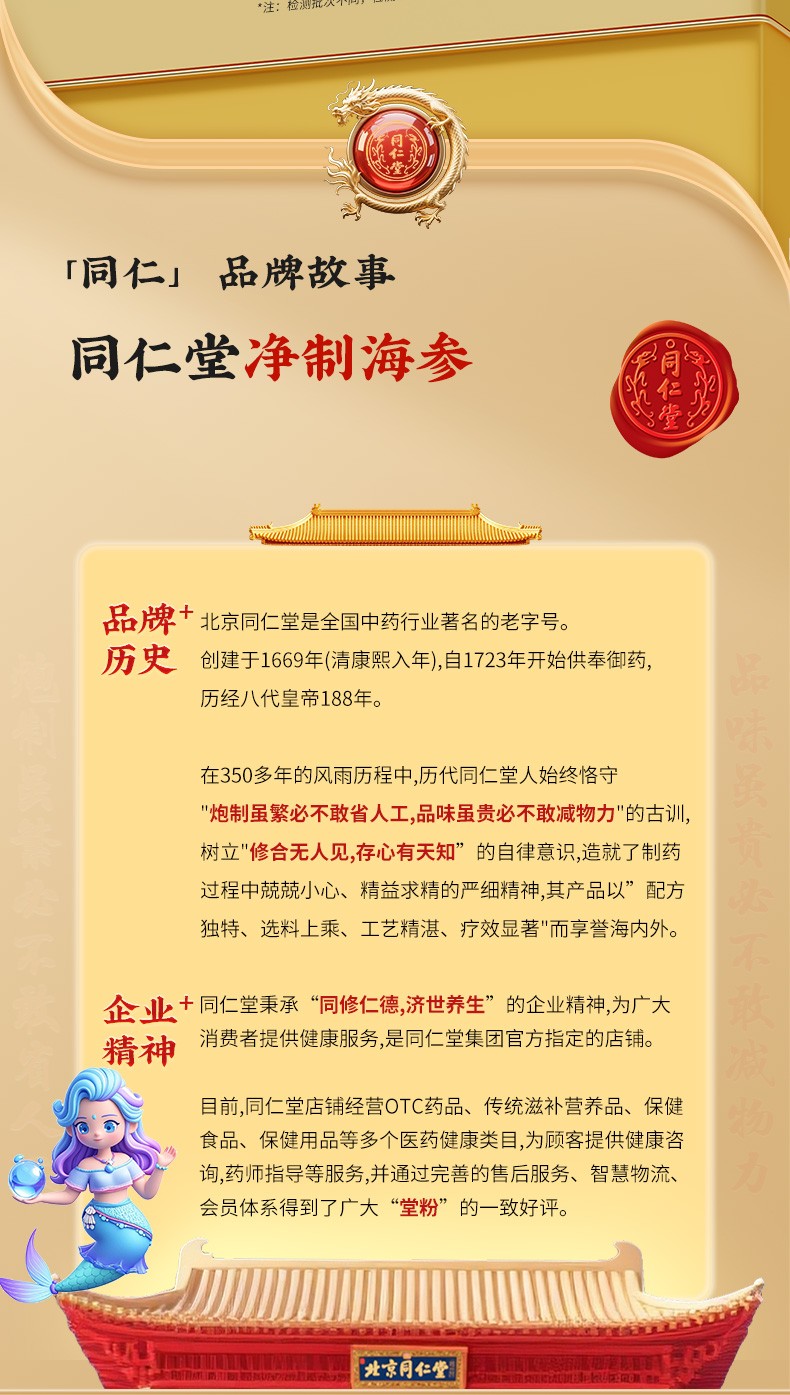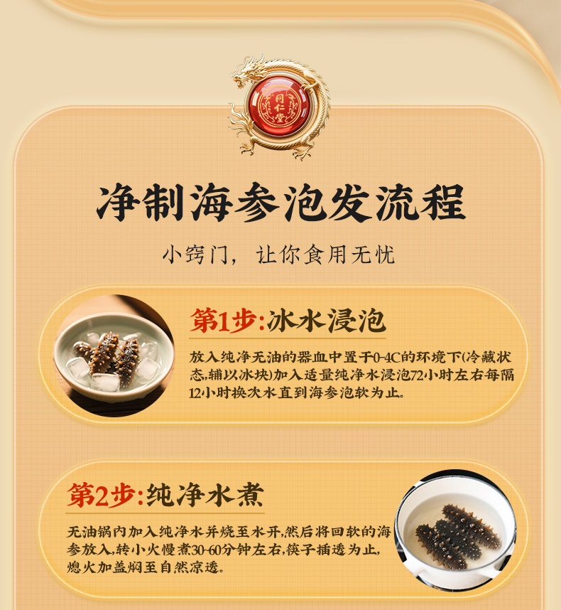同仁堂 黑金辽参(速发海参)138克(35只)/100-150头/500克