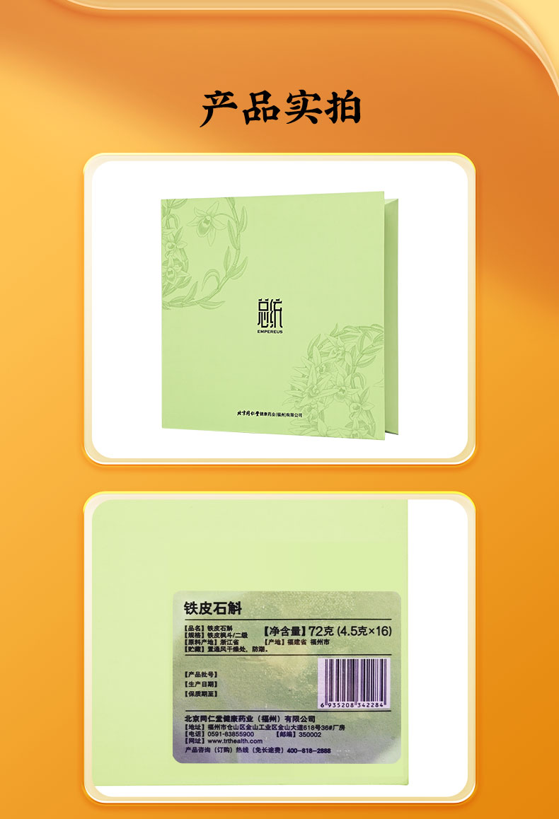 商品名称:同仁堂 铁皮石斛 二级/72克(4.5克*16)/盒