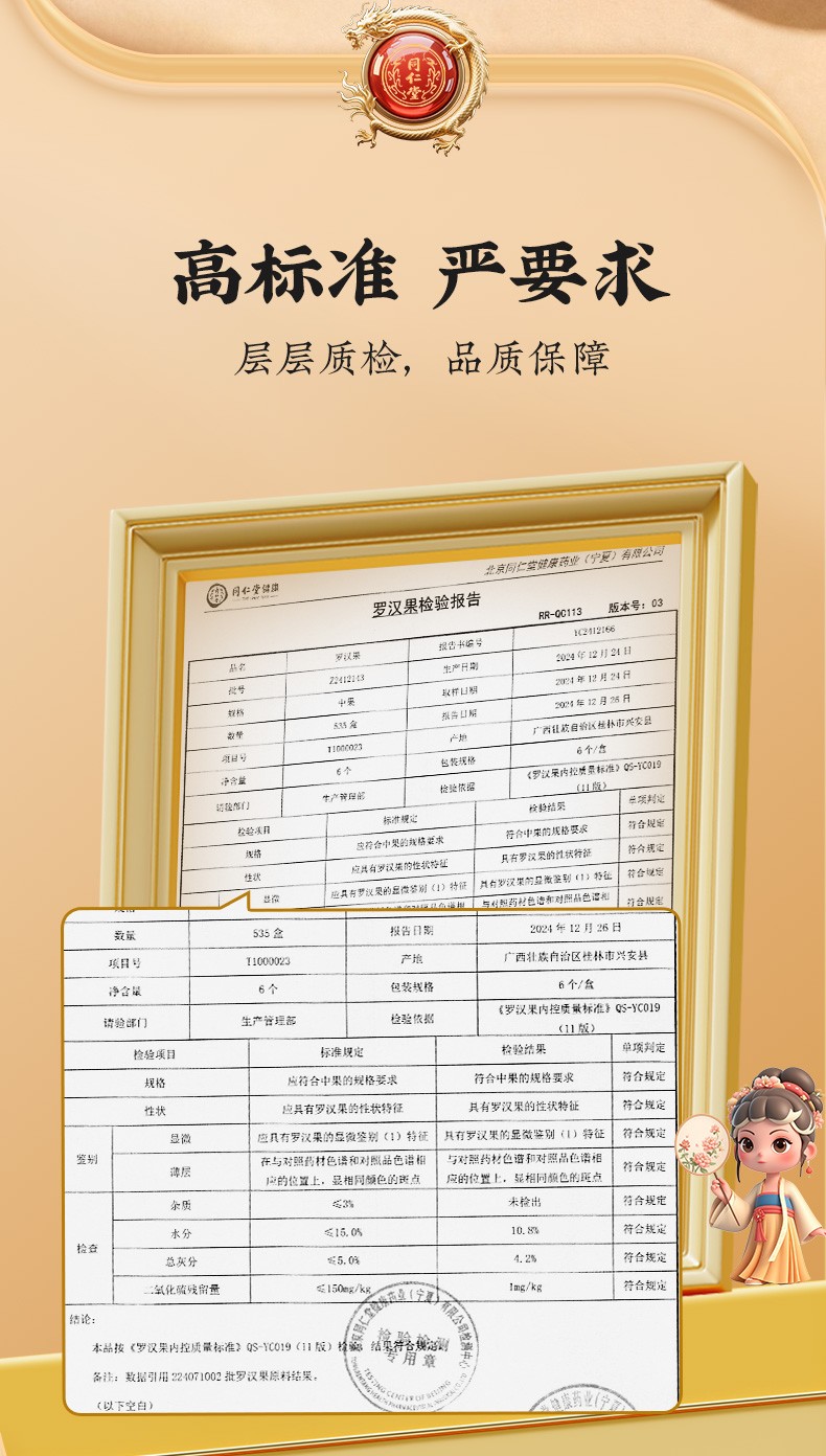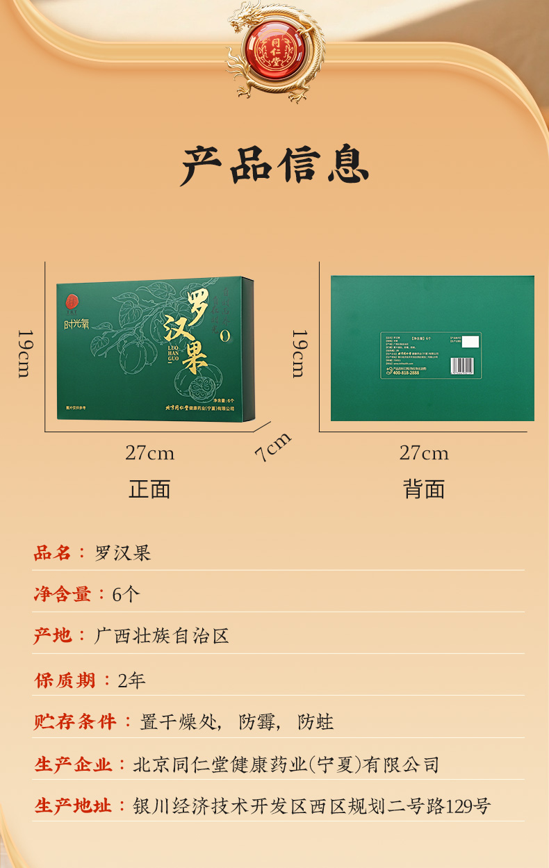 商品名称:同仁堂 罗汉果 中果/6个
