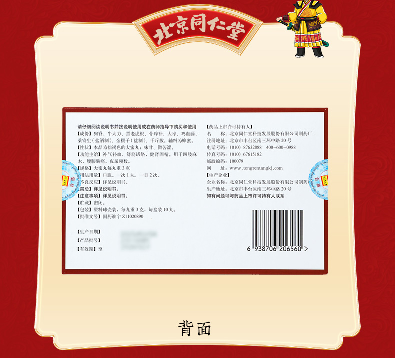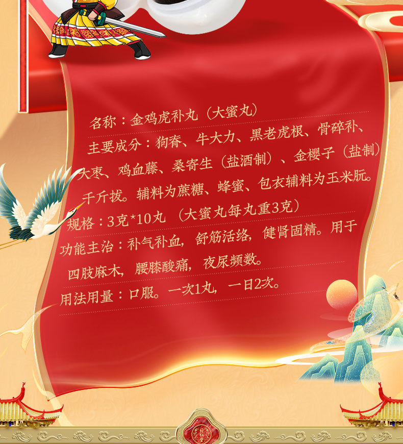 商品名称:同仁堂 金鸡虎补丸 3g*10丸/盒