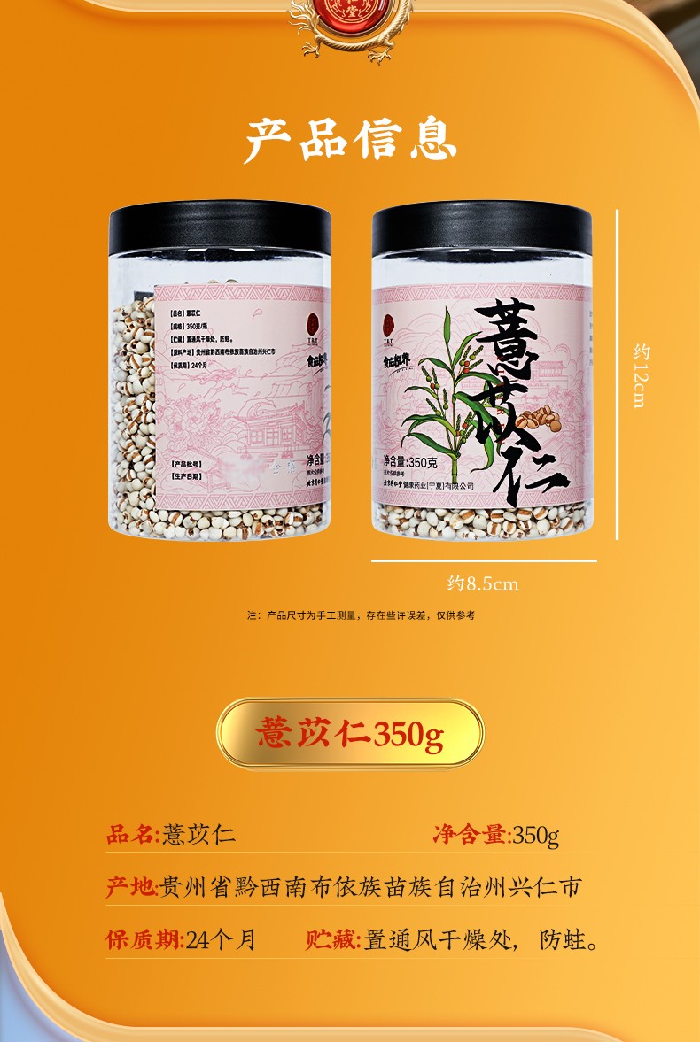商品名称:同仁堂 薏苡仁 350克/瓶