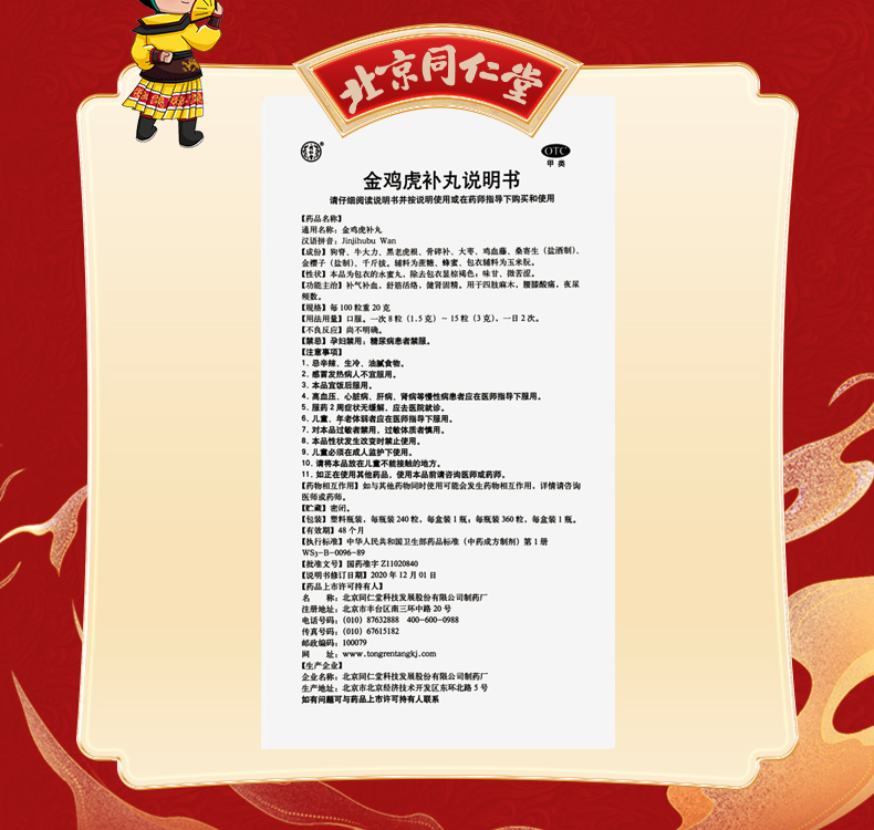 商品名称:同仁堂 金鸡虎补丸 360丸/盒