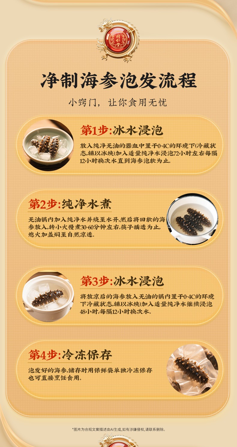 同仁堂 黑金辽参(速发海参)138克(35只)/100-150头/500克