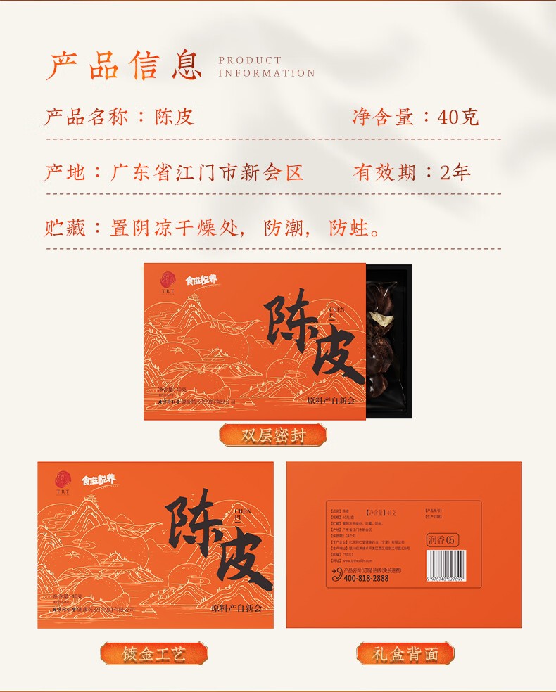 商品名称:同仁堂 陈皮 40g/盒