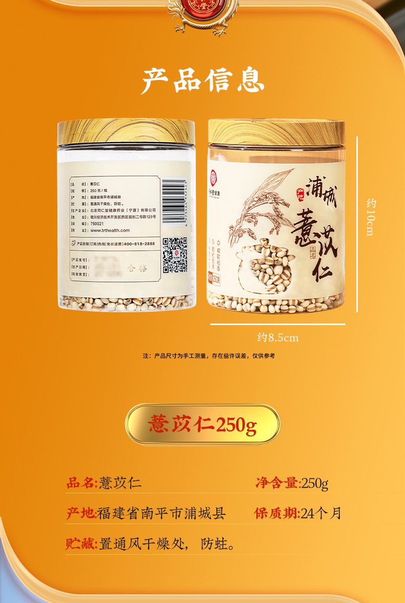 商品名称:同仁堂 薏苡仁 250克/瓶