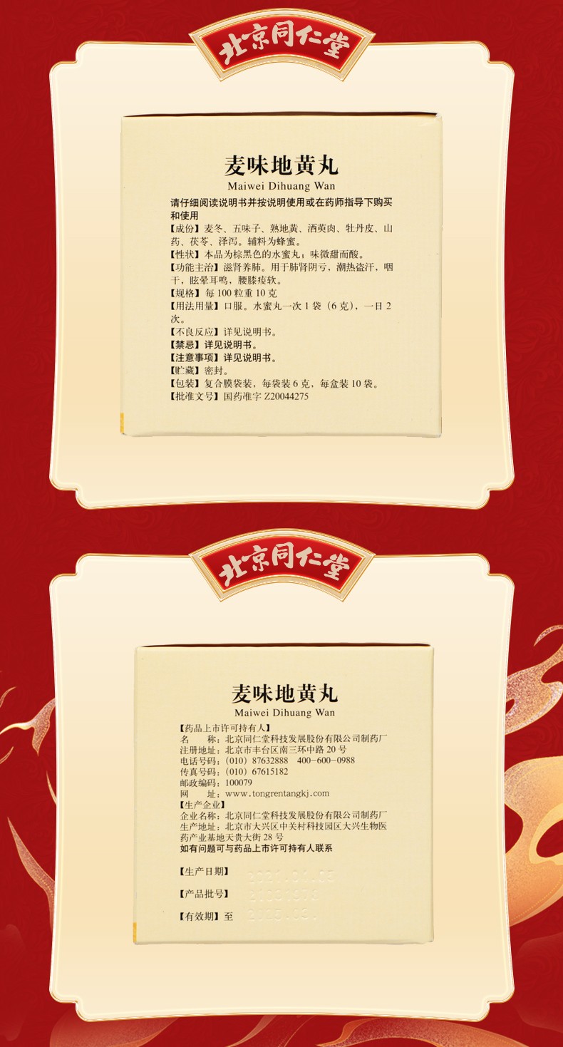 商品名称:同仁堂 麦味地黄丸 6g*10袋/盒