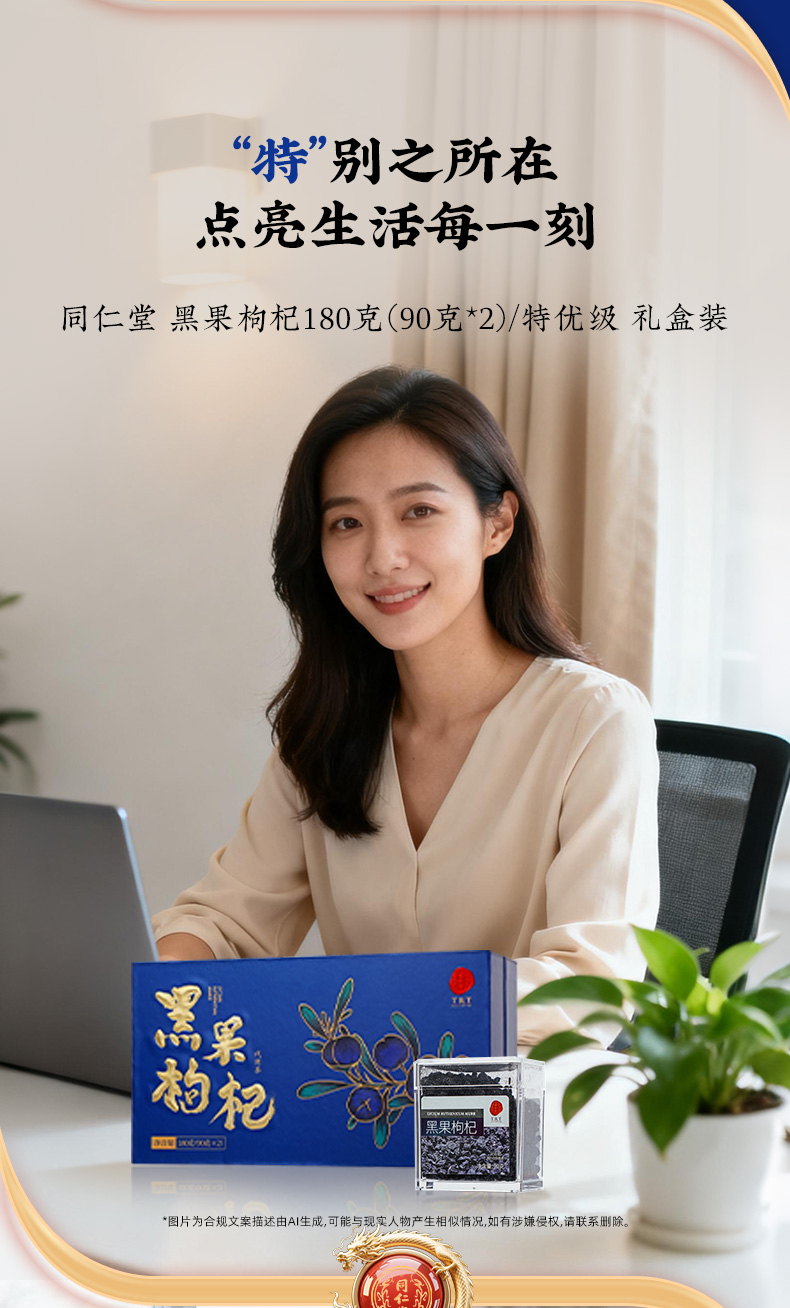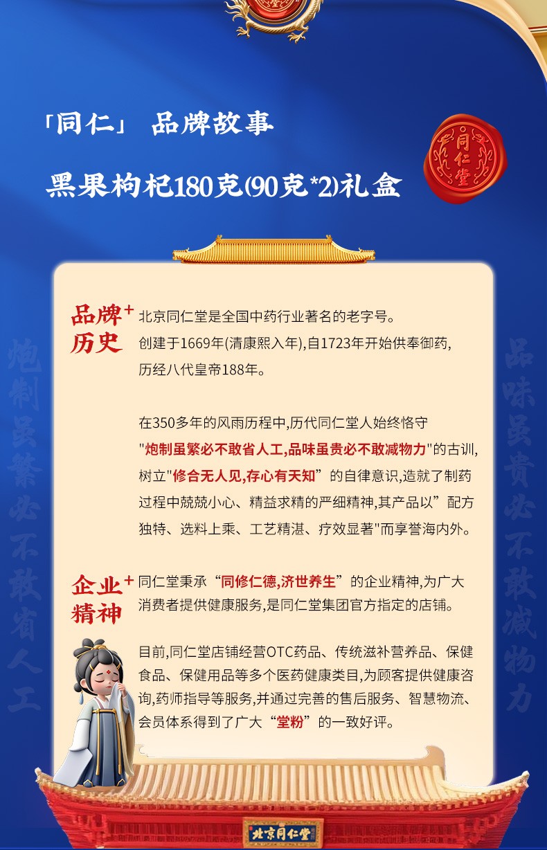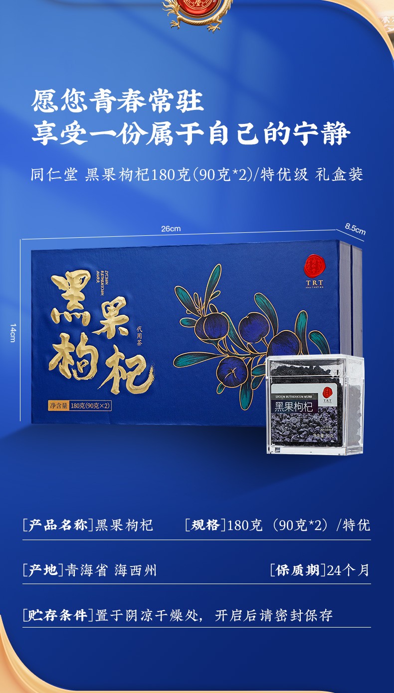 商品名称:同仁堂 黑果枸杞 180克(90克*2)/特优级/盒
