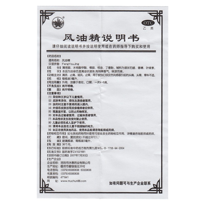 - 商品名称:沐春 风油精 3ml/盒