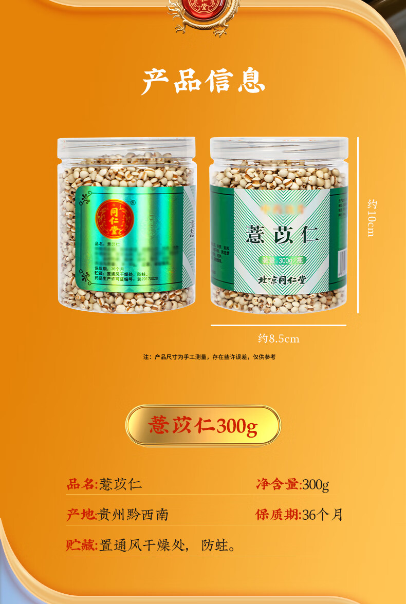 商品名称:同仁堂 薏苡仁 300g/瓶