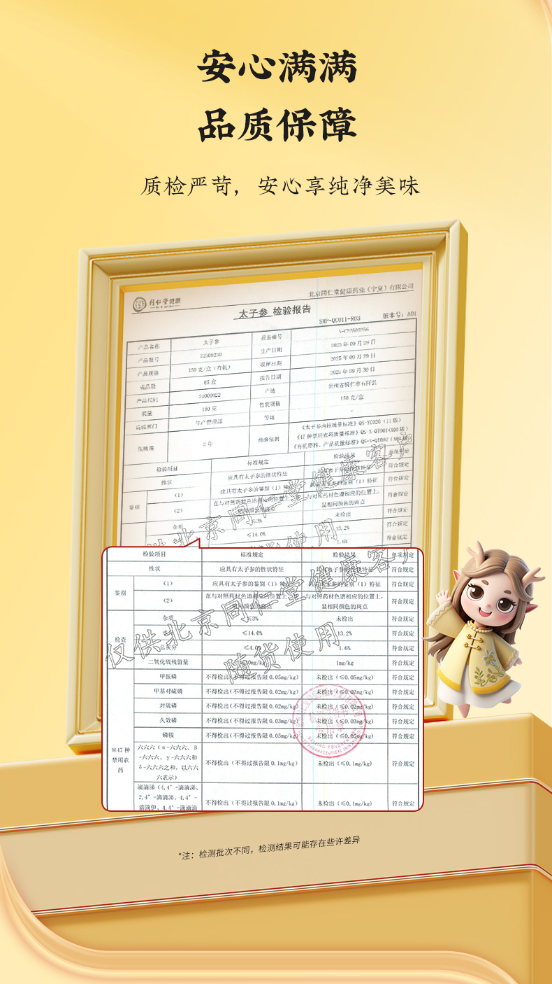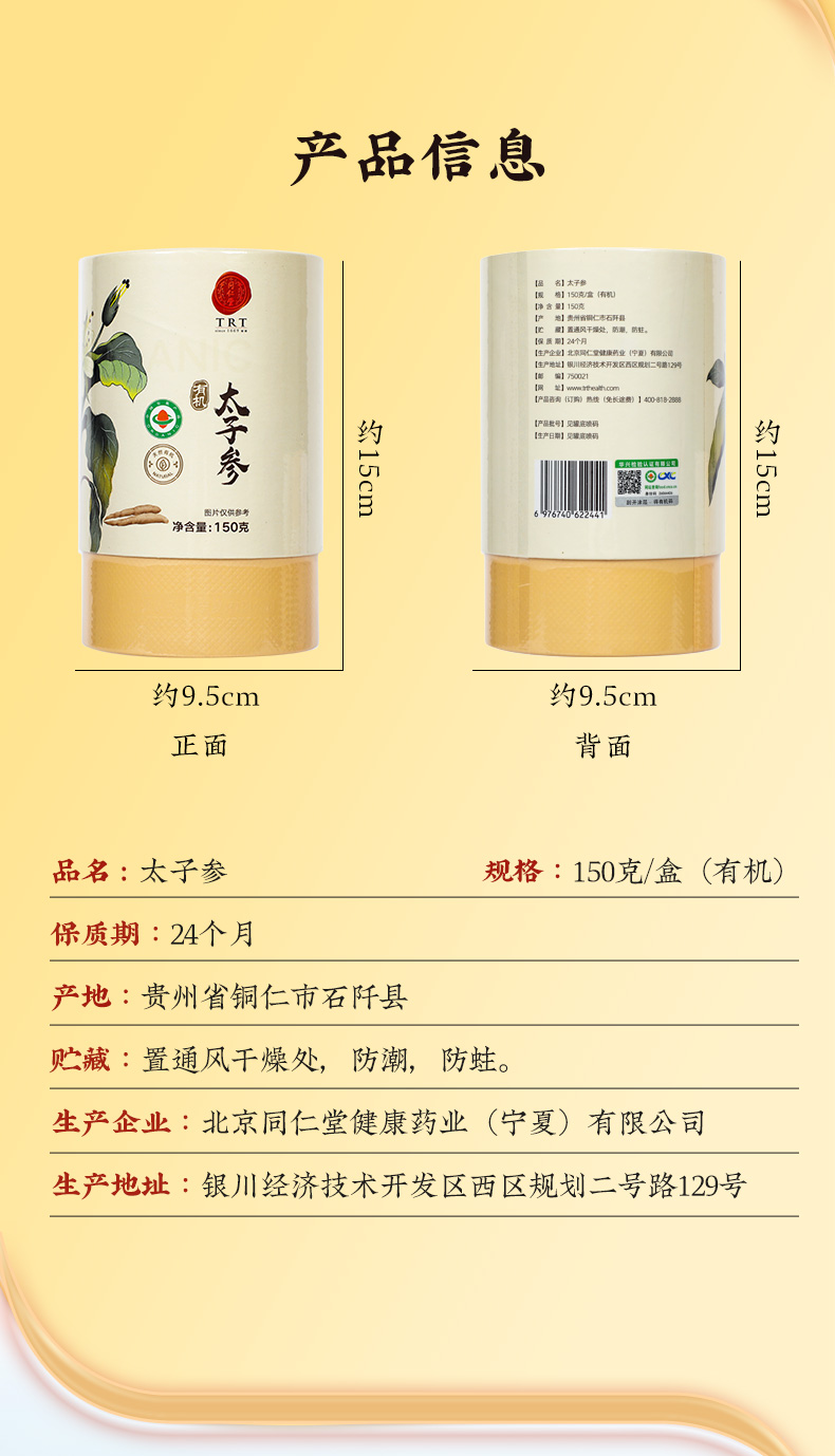 商品名称:同仁堂 太子参(有机) 150克/盒