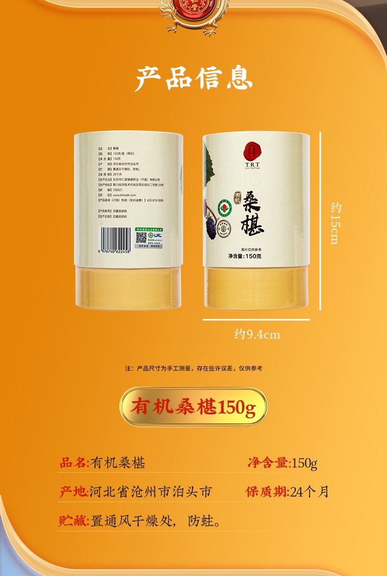 商品名称:同仁堂 桑椹 150克/盒(有机)