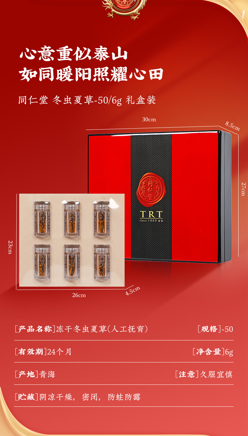 商品名称:同仁堂 冻干冬虫夏草(人工抚育)礼盒装 -50/6克
