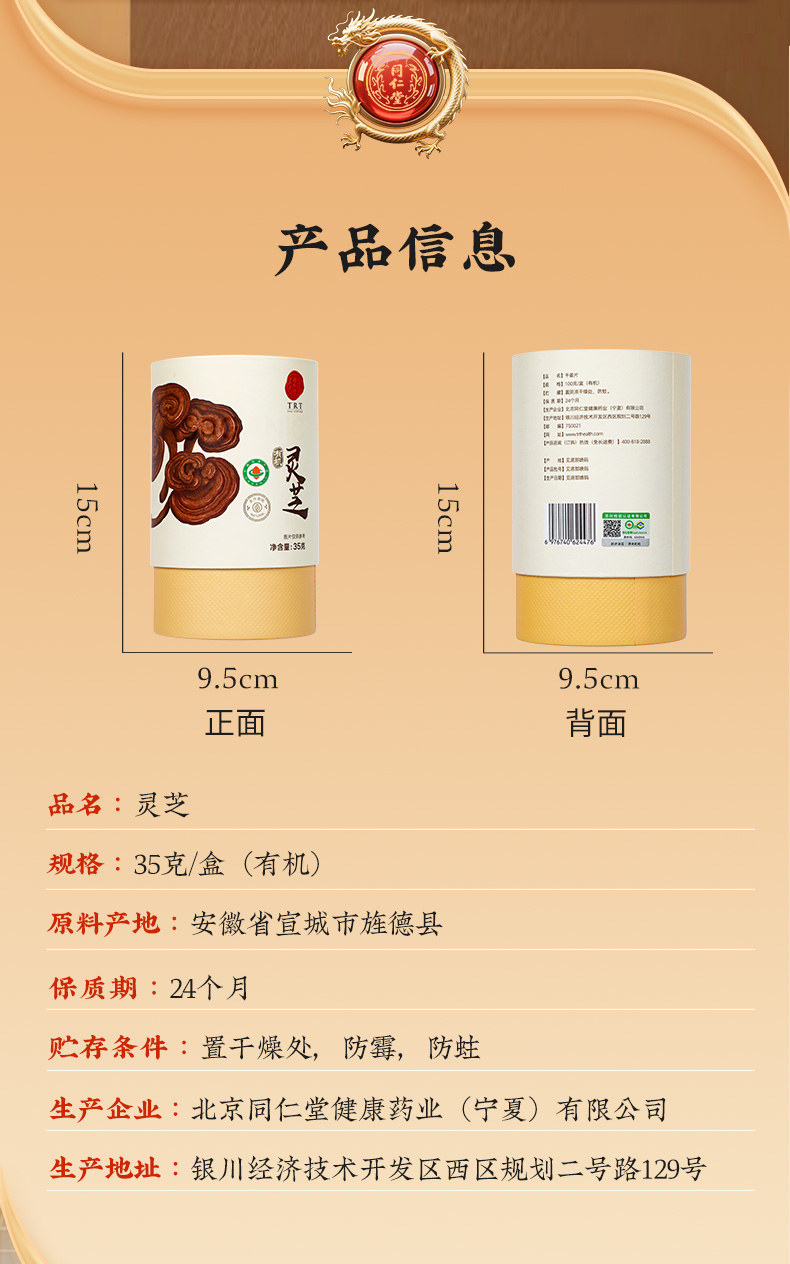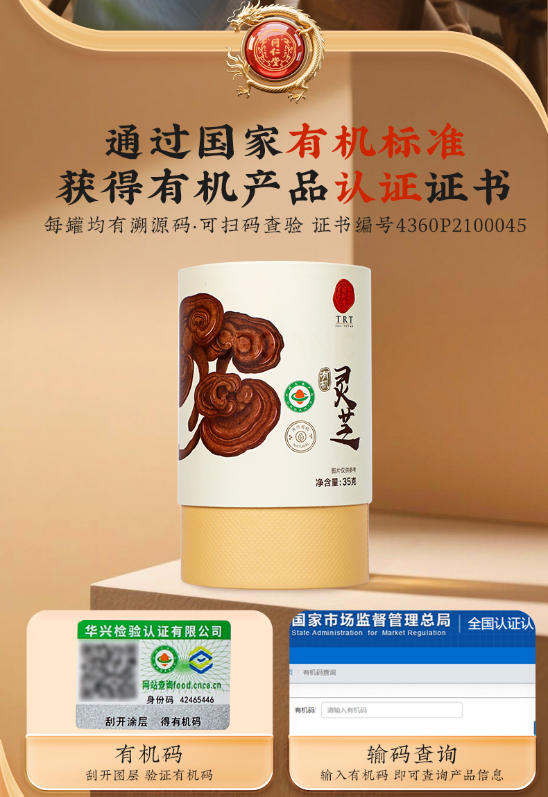 商品名称:同仁堂 灵芝 35克/盒(有机)