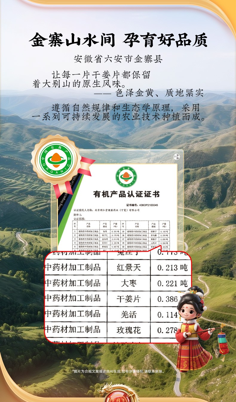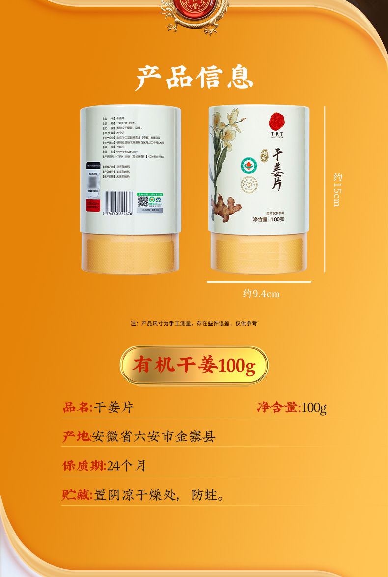 商品名称:同仁堂 干姜片 100克/盒(有机)