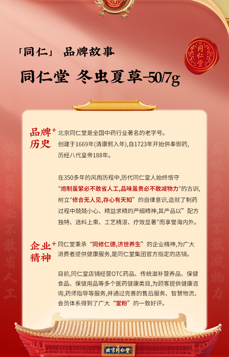 商品名称:同仁堂 冬虫夏草 -50/7g/盒