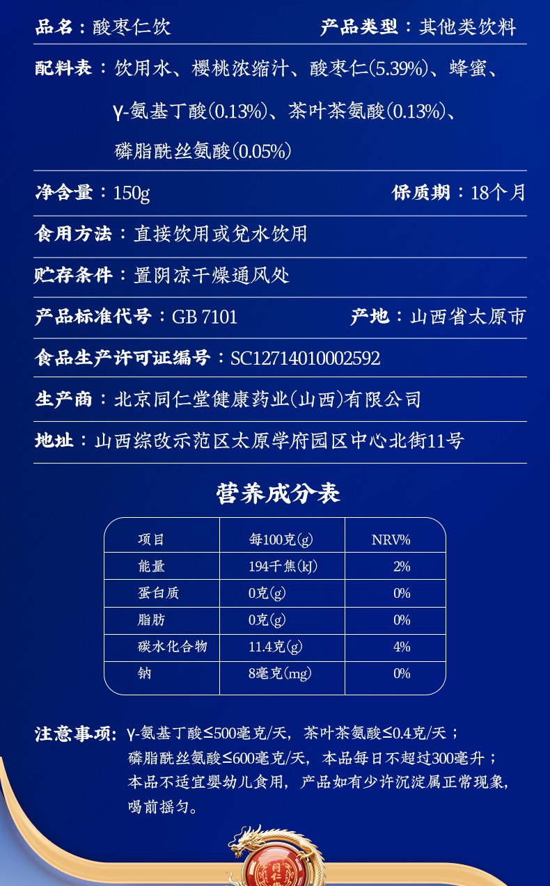 商品名称:同仁堂 酸枣仁饮 200ml(20ml*10)/盒