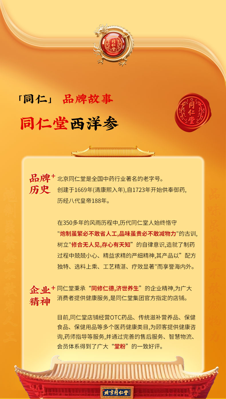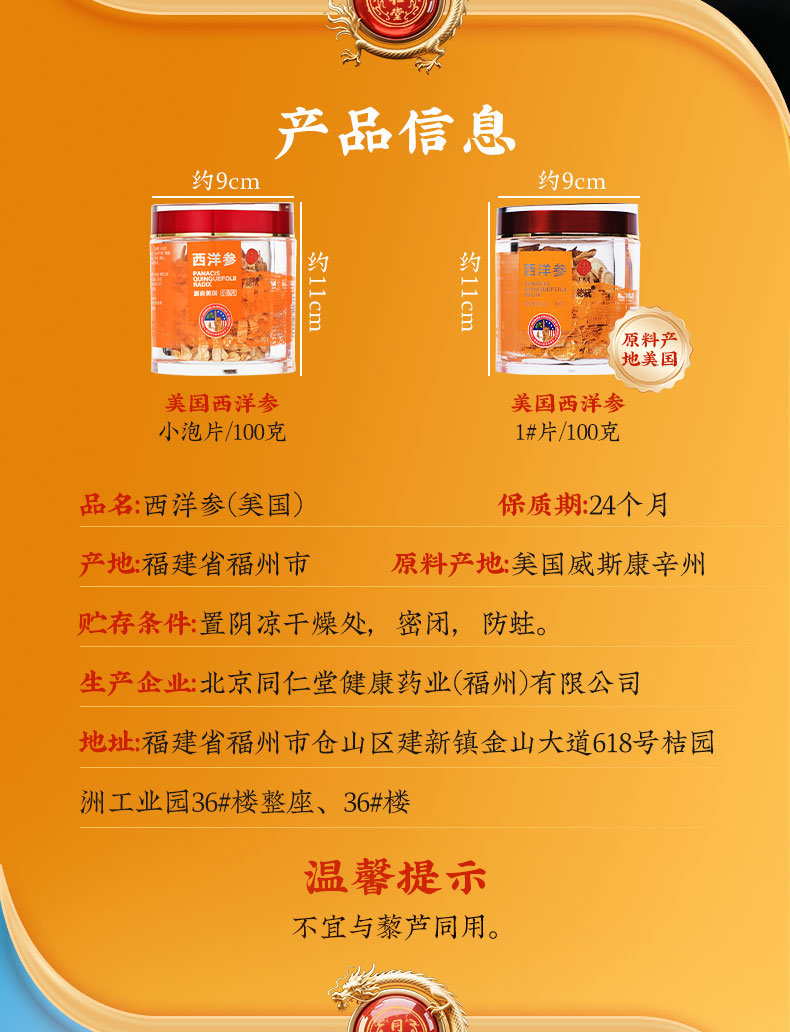 商品名称:同仁堂 西洋参 1#片/100克/盒