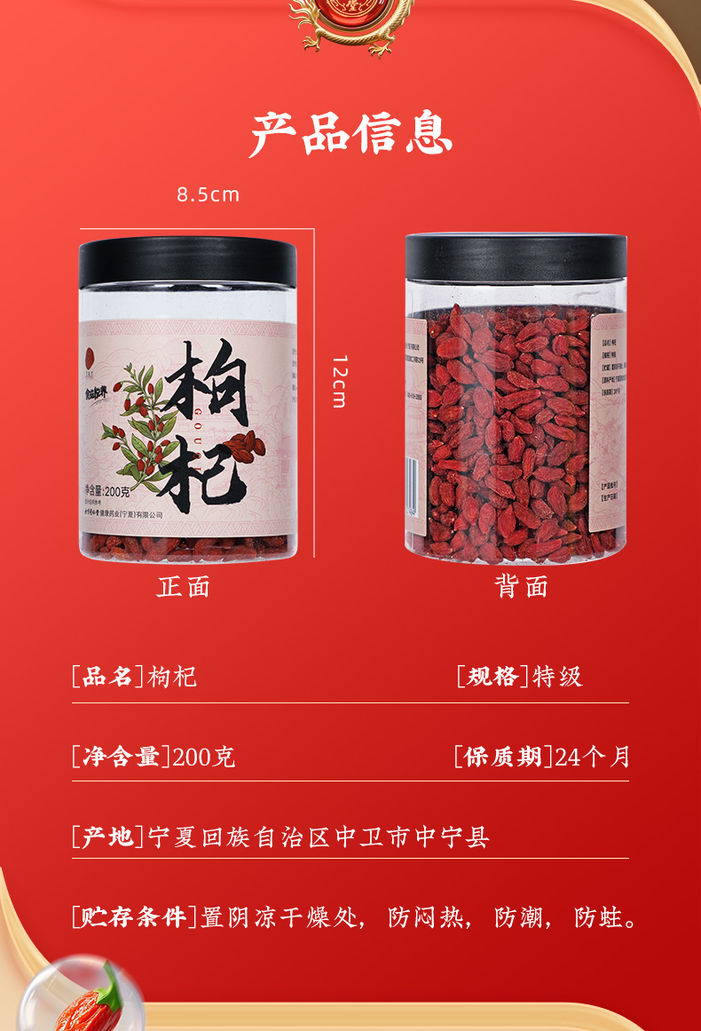 商品名称:同仁堂 枸杞 特级200g/瓶