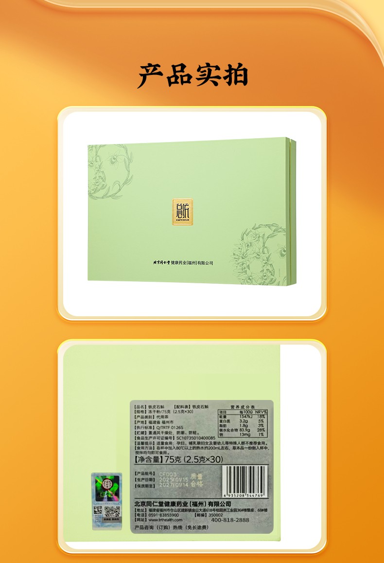 商品名称:同仁堂 铁皮石斛 冻干粉/75克(2.5克×30)/盒