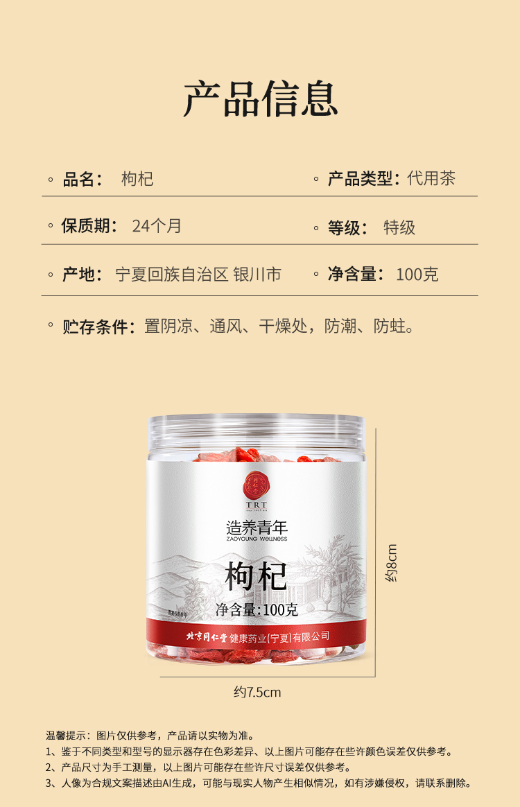 - 商品名称:同仁堂 枸杞 特级/100g/盒