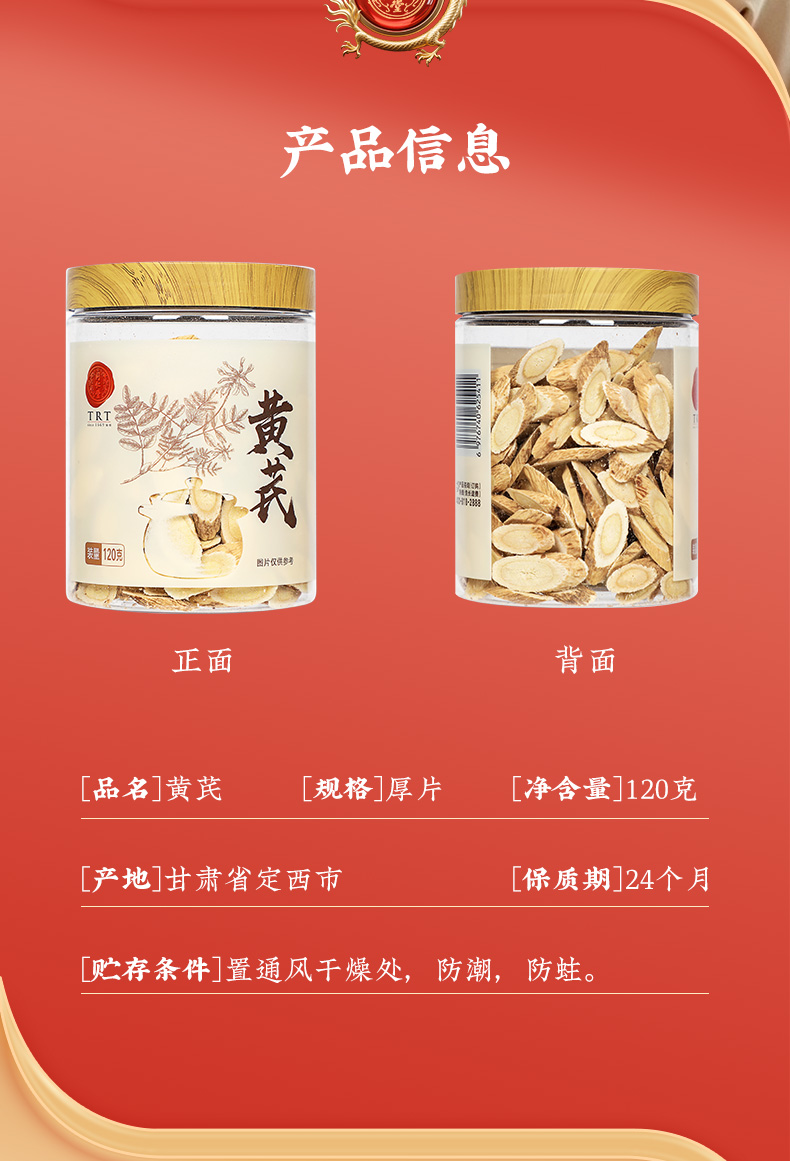 商品名称:同仁堂 黄芪 厚片 120克/瓶