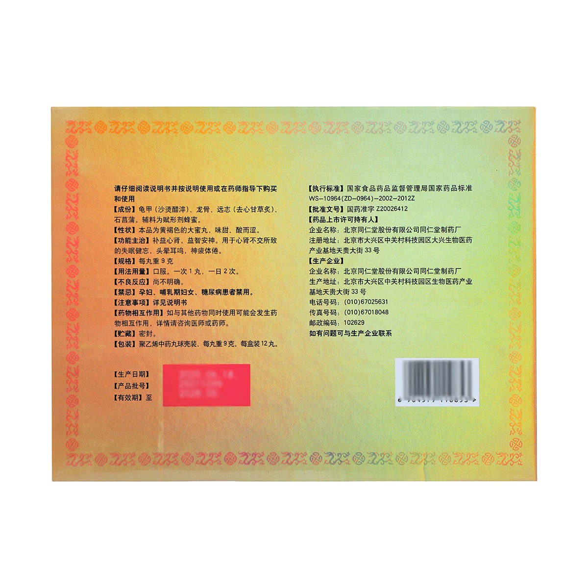 同仁堂 孔圣枕中丸 9克×12丸/盒