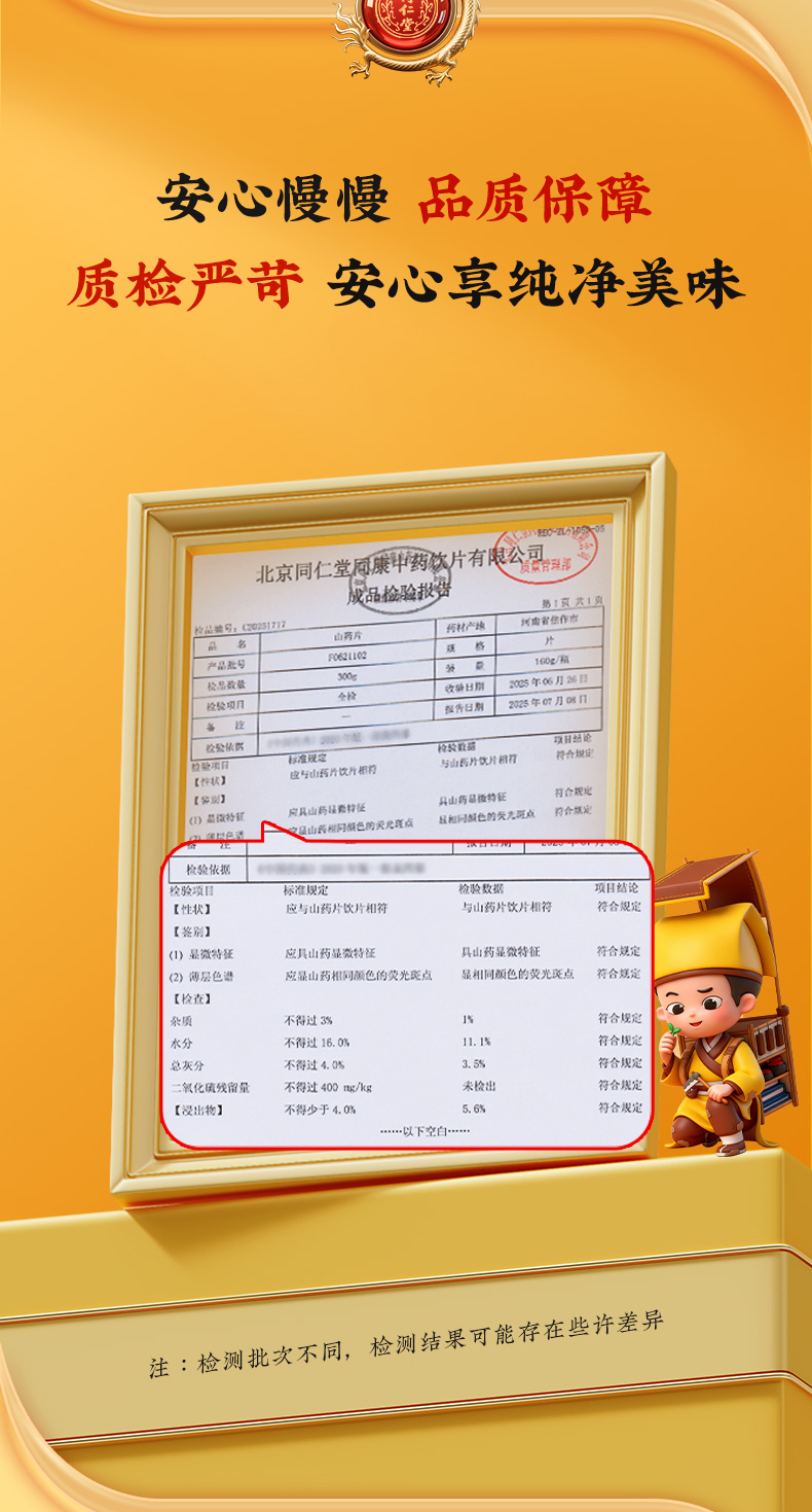 商品名称:同仁堂 山药片 160g/瓶