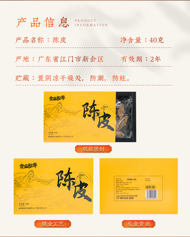 - 商品名称:同仁堂 陈皮 润香05/40克/盒
