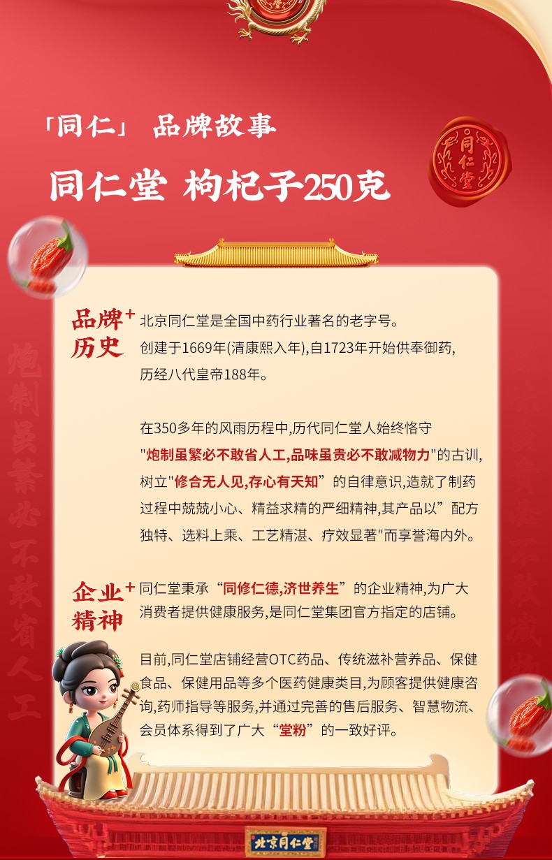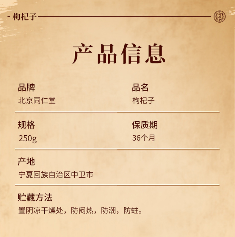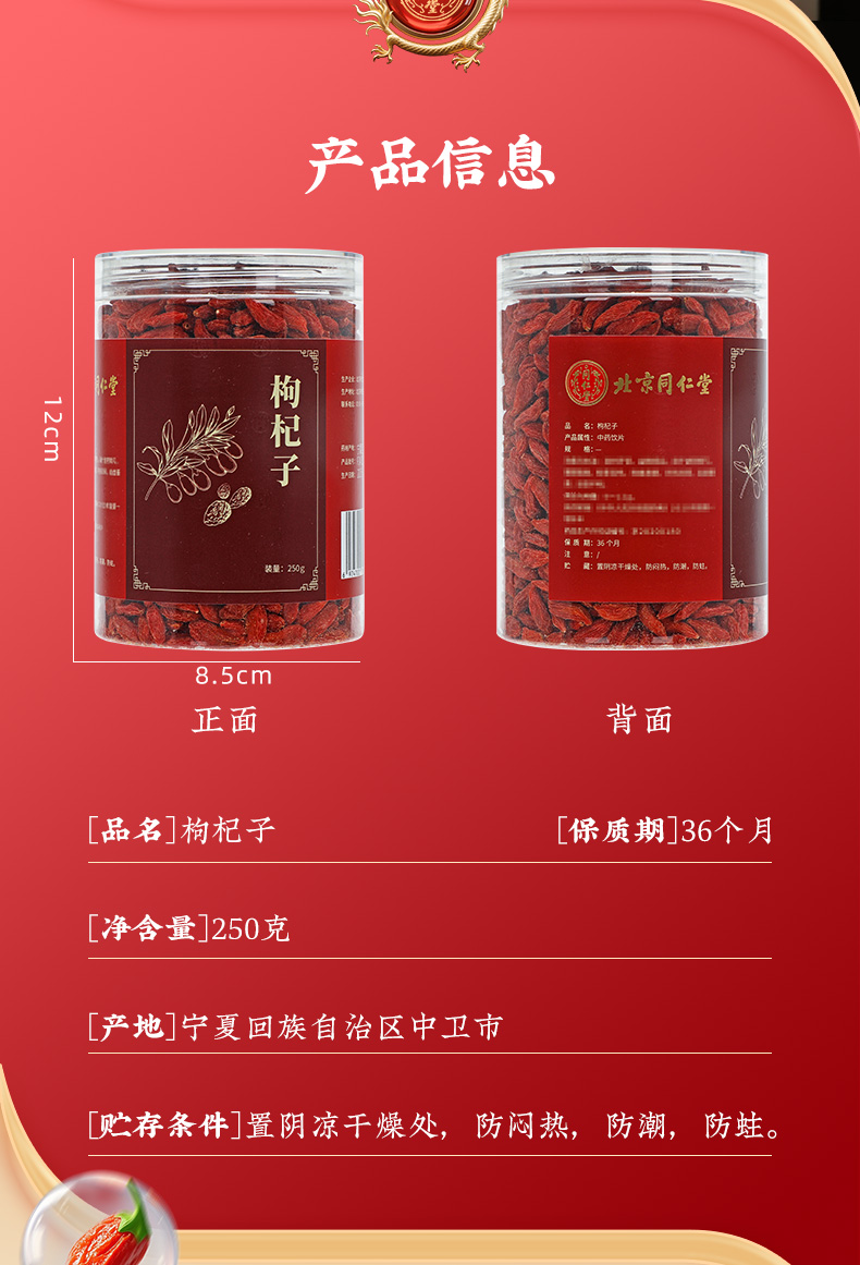 商品名称:同仁堂 枸杞子 250g/瓶