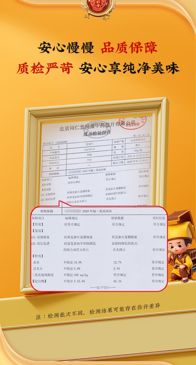 商品名称:同仁堂 党参片 厚片100g/瓶