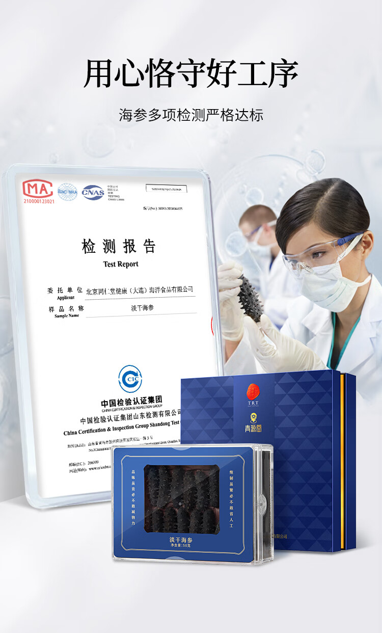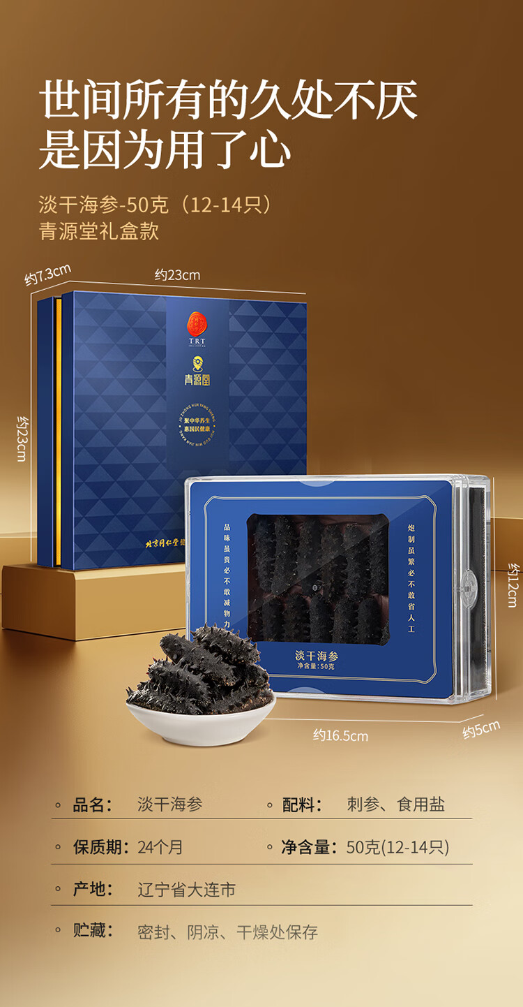 商品名称:同仁堂 淡干海参 50克(120-140头/500克)/盒