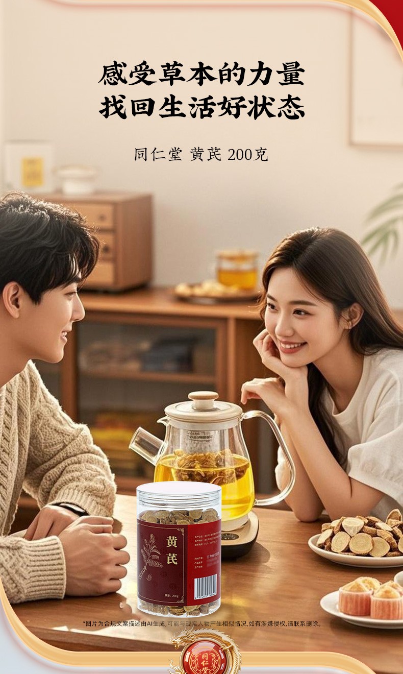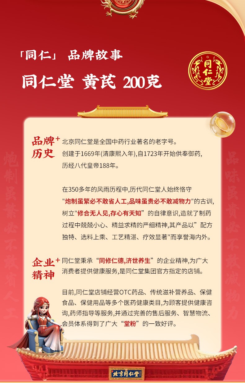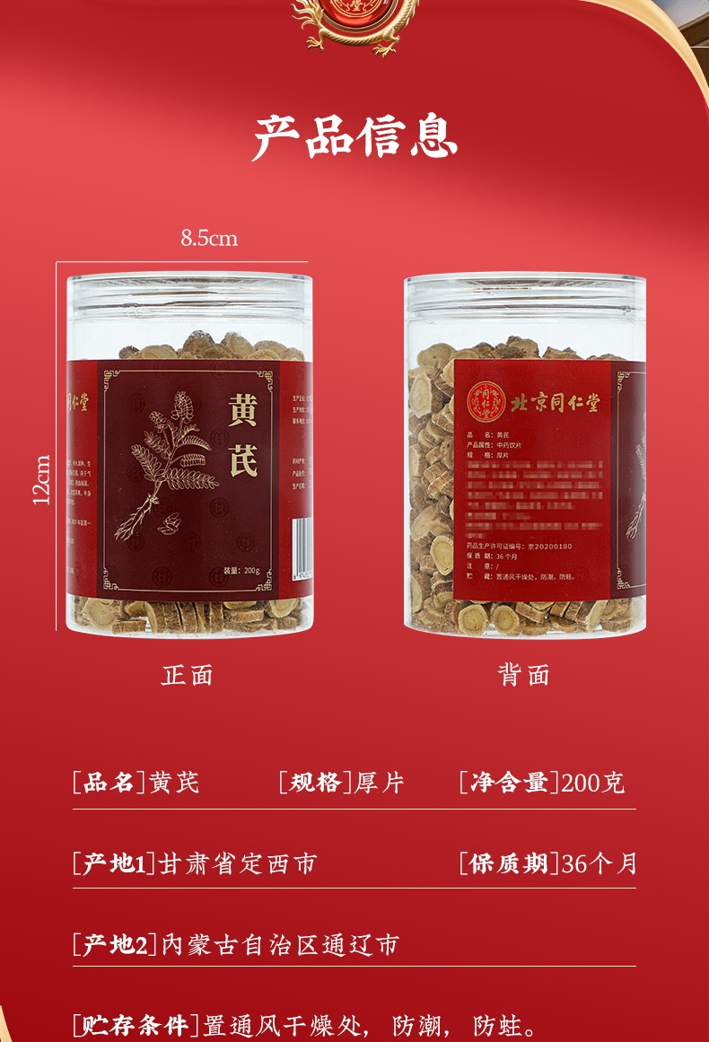 商品名称:同仁堂 黄芪 厚片 200g/瓶