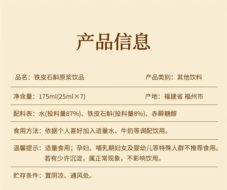 商品名称:同仁堂 铁皮石斛原浆饮品 175ml(25ml*7)/盒