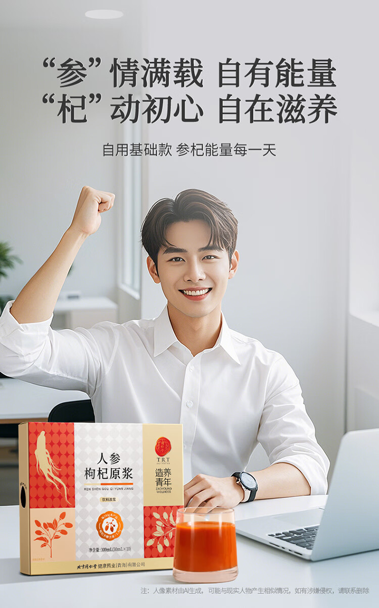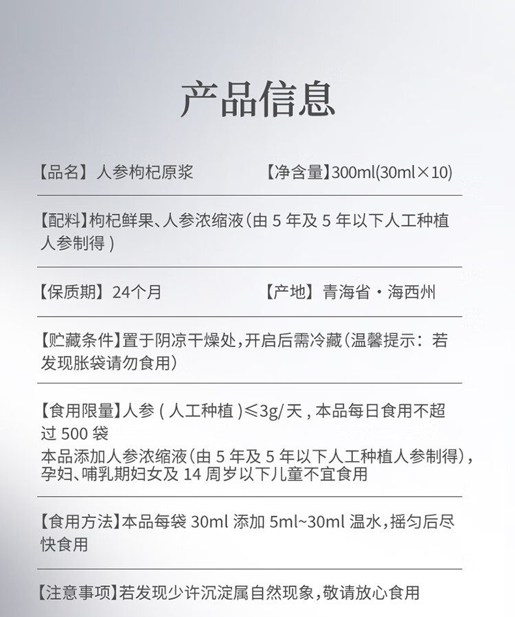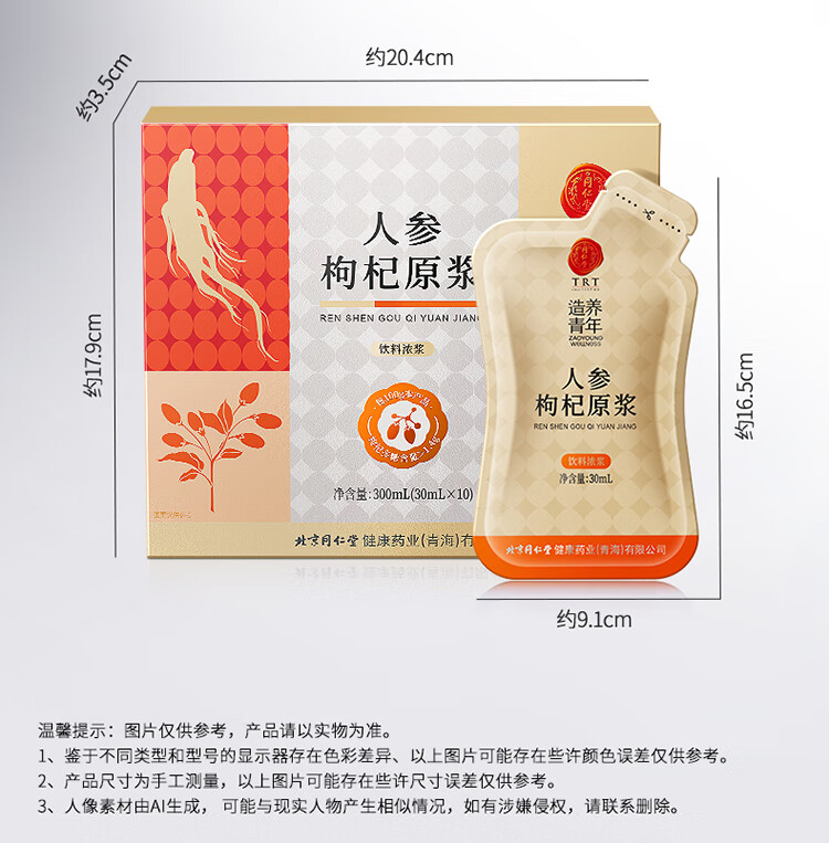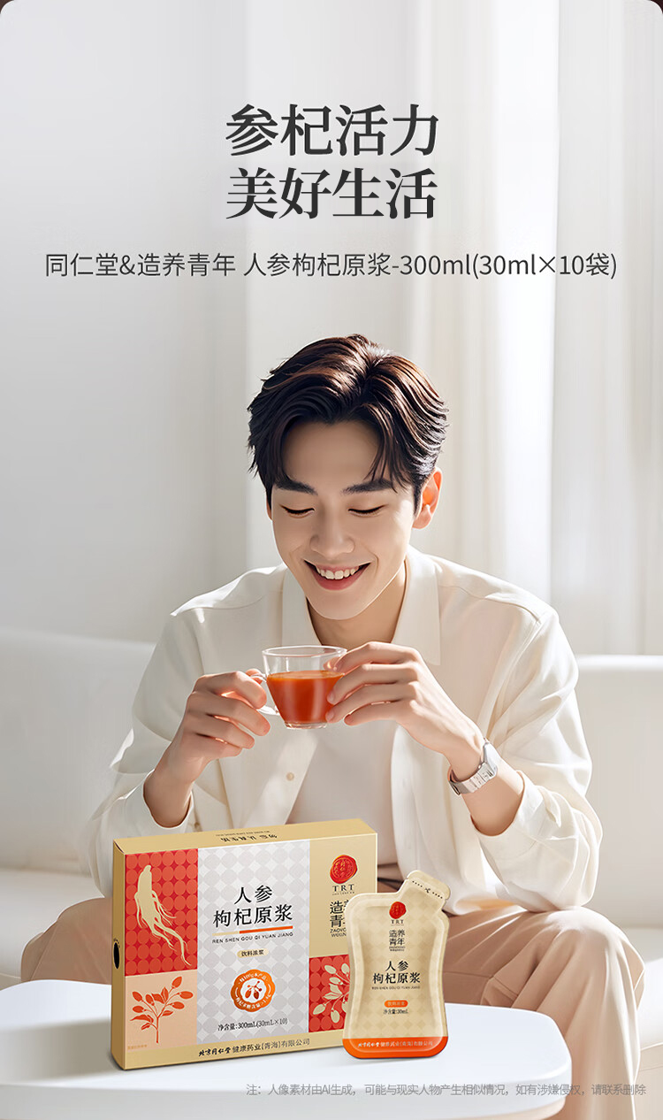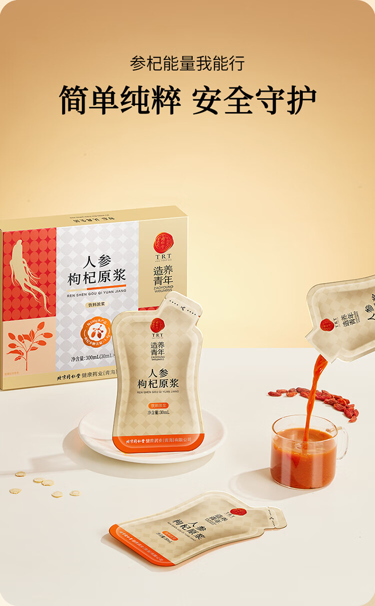 商品名称:同仁堂 人参枸杞原浆 300ml(30ml*10)/盒