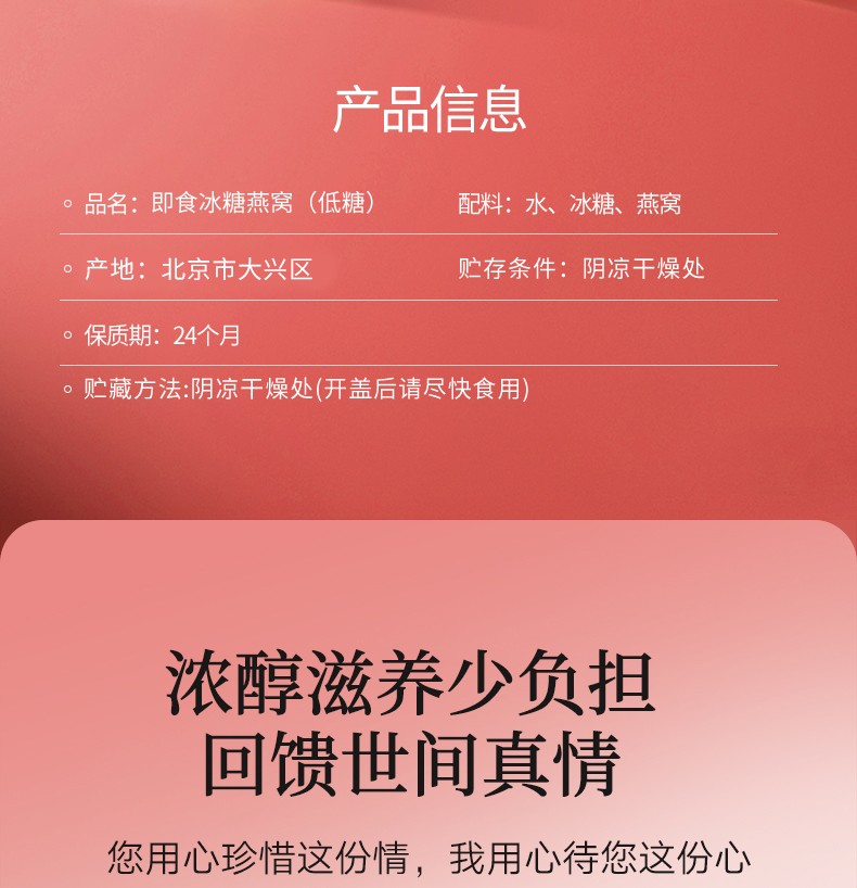 - 【商品名称】:即食冰糖燕窝(低糖)