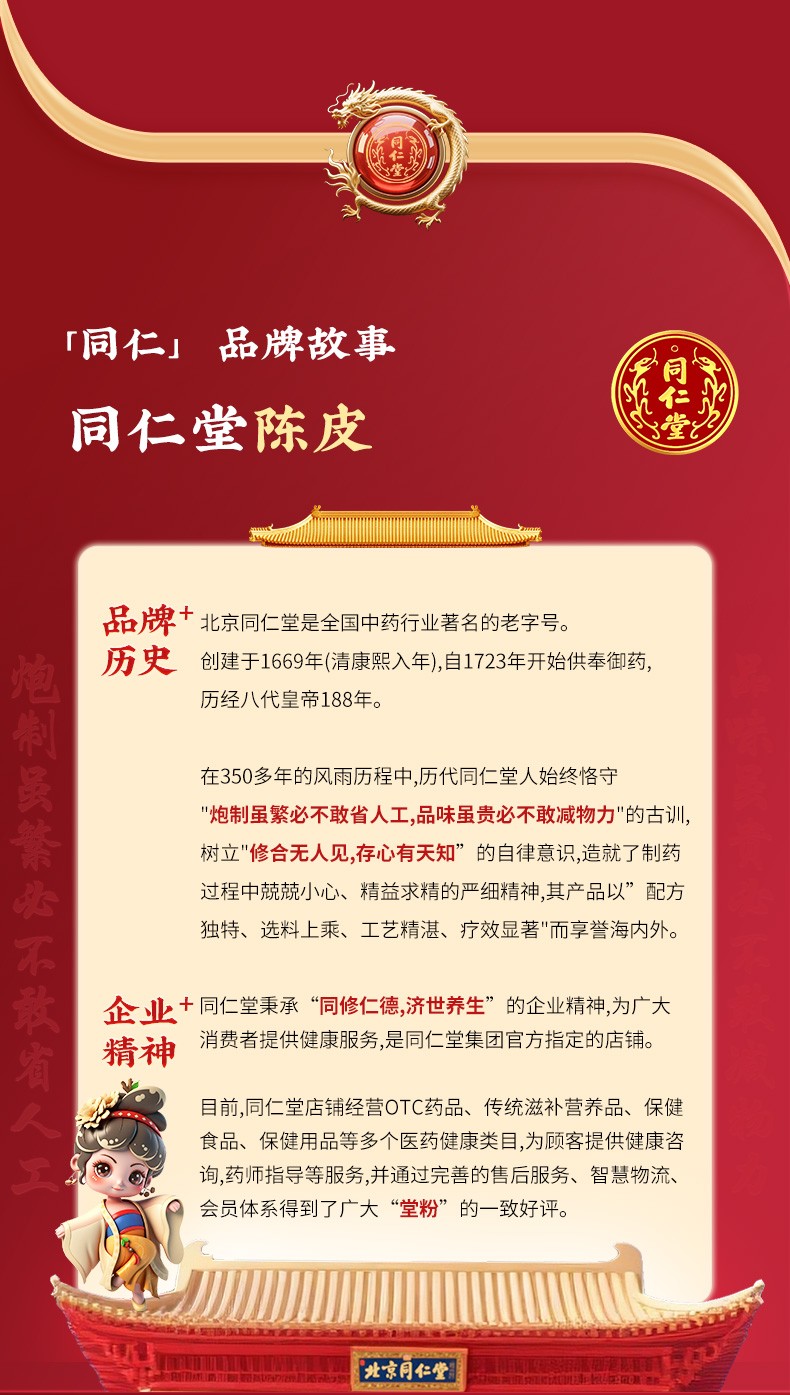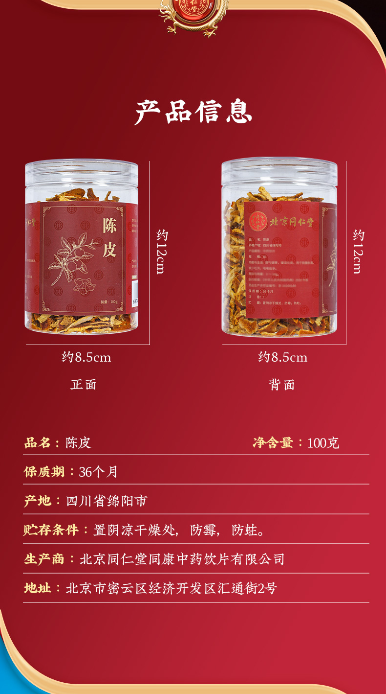 商品名称:同仁堂 陈皮丝 100克/瓶