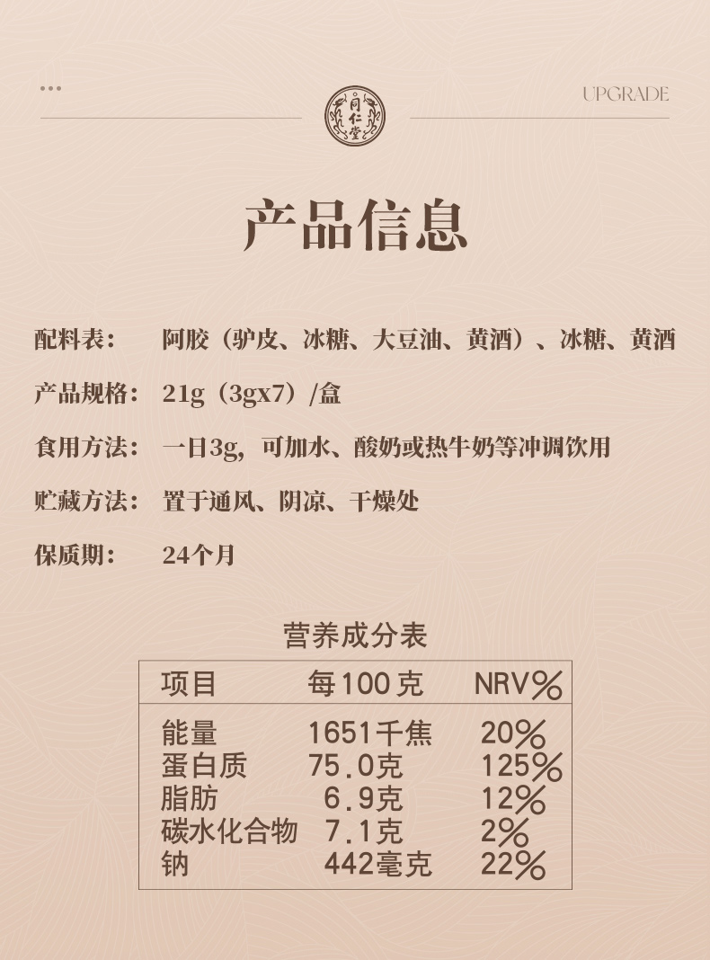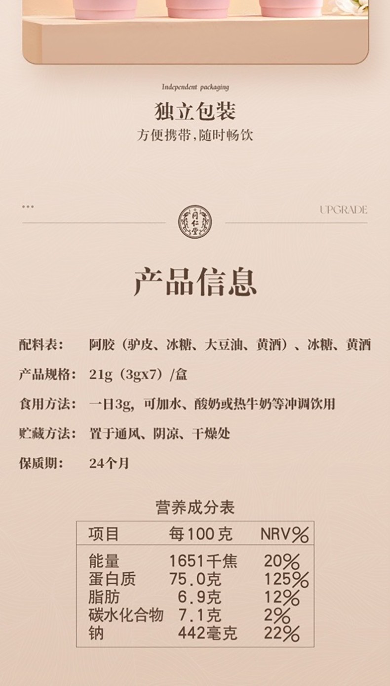 商品名称:同仁堂 阿胶速溶粉固体饮料 21g(3g*7)/盒
