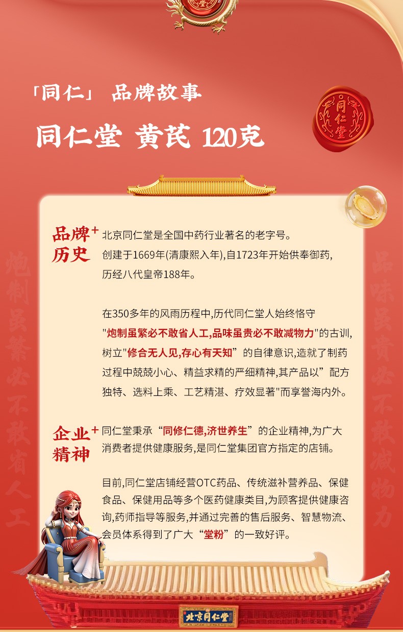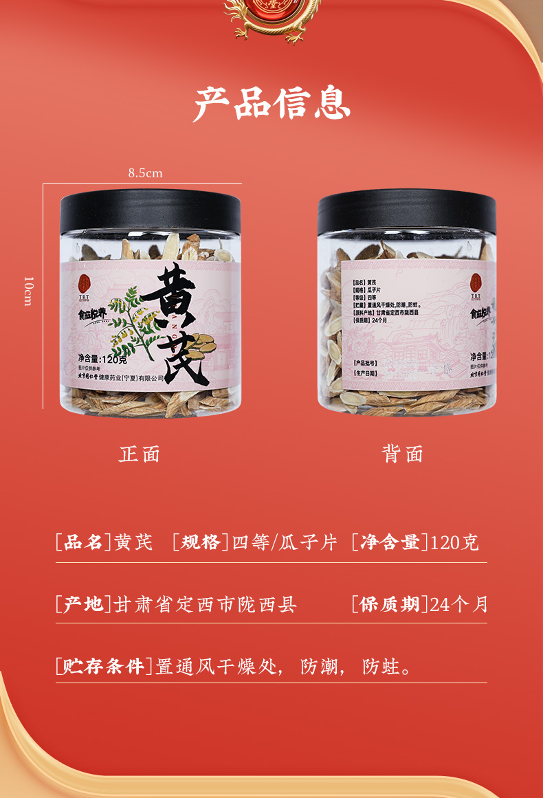 - 商品名称:同仁堂 黄芪 四等/瓜子片 120g/瓶