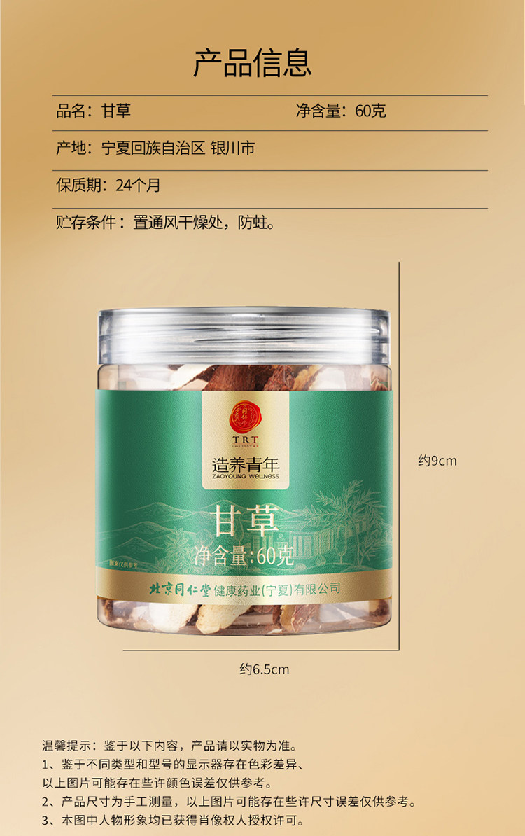 商品名称:同仁堂 甘草 60g/瓶