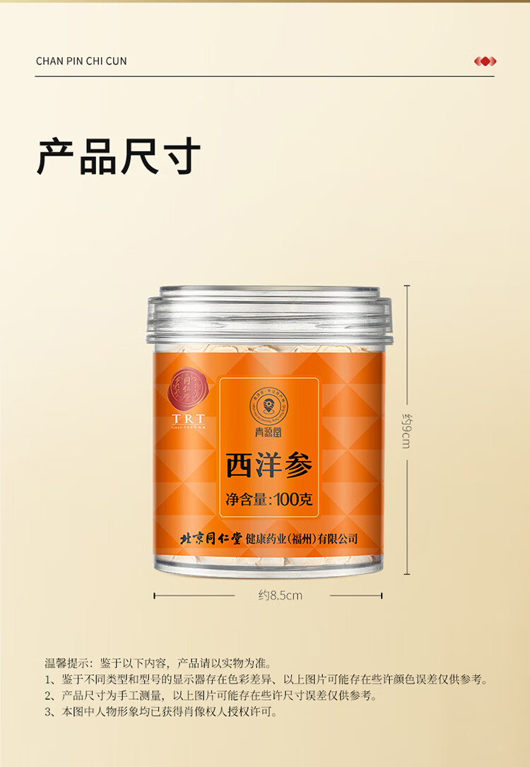 - 商品名称:同仁堂 西洋参 2号圆片/100g/瓶