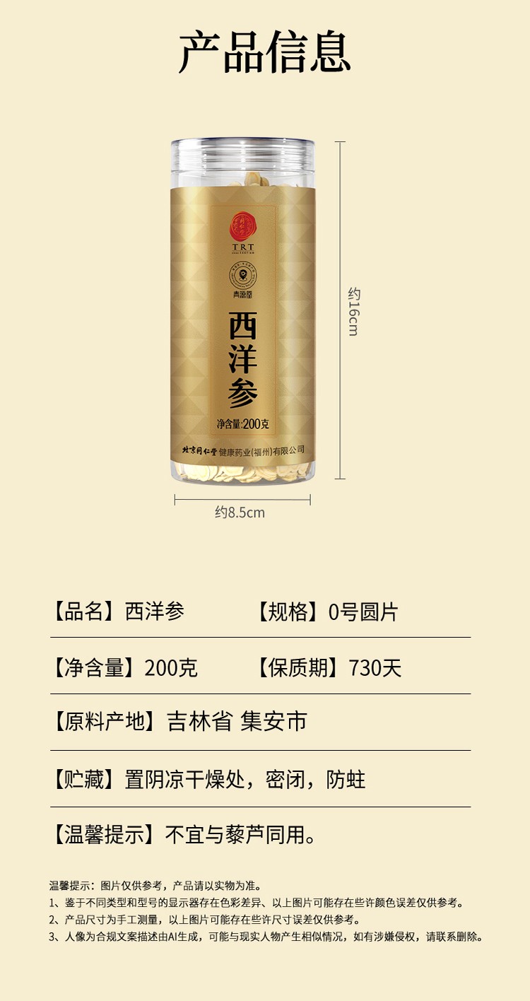 商品名称:同仁堂 西洋参 200克/盒