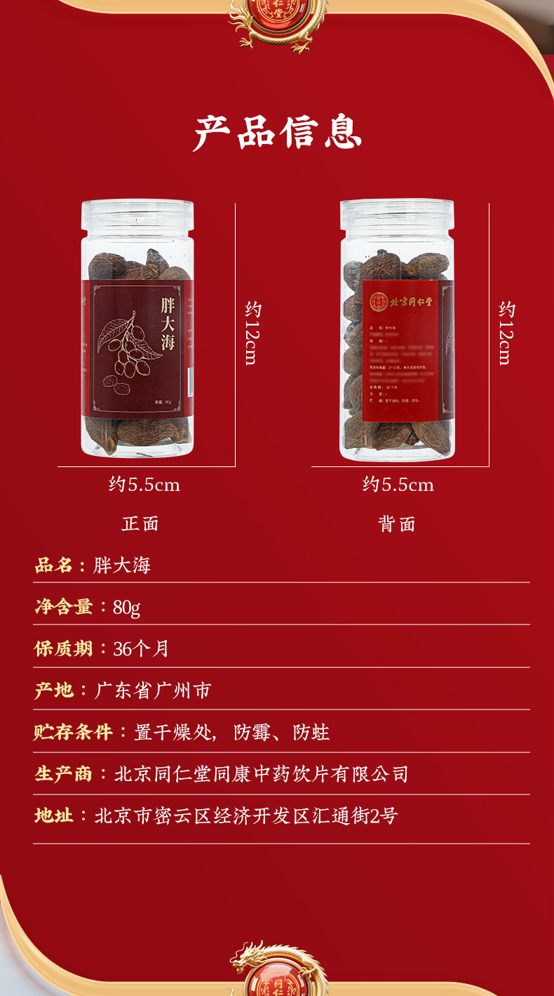 商品名称:同仁堂 胖大海 80g/瓶
