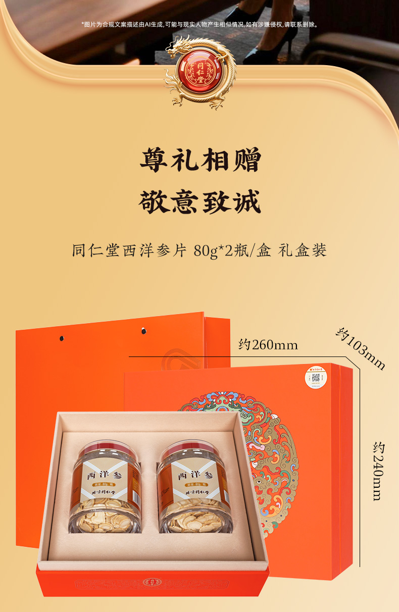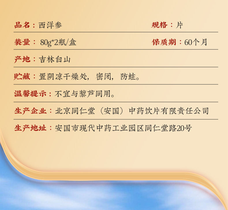 商品名称:同仁堂 西洋参 80g*2瓶/盒