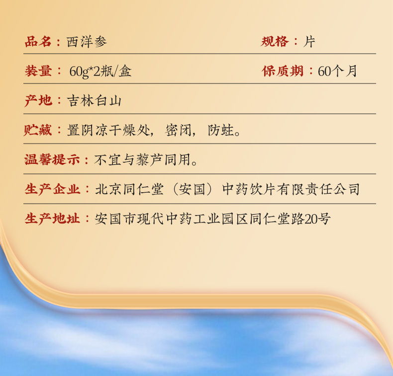 商品名称:同仁堂 西洋参礼盒装 60g*2瓶
